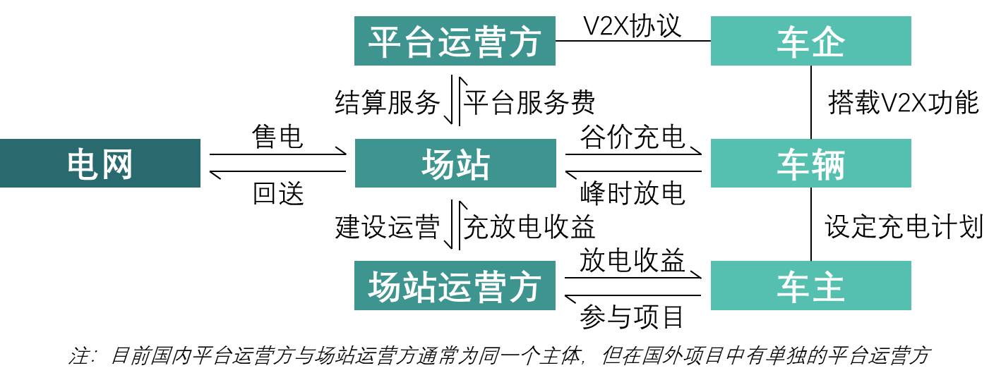 V2G项目的场站与常规的充电站在运营模式上的差别并不算大。通常由当地的电网公司作为项目发起方,制定项目整体规划、协调各参与方,并且负责电网与场站之间的电力与现金的结算。而项目运营方通常是能源企业、电网企业子公司,或者专注于储能行业的新兴企业。V2G充电桩的供应则是来自于桩企,伴随着新能源汽车行业的发展,近年来这类企业也在配套充电设施建设上积累了足够的经验。而试点阶段的场站通常建设在当地政府控股集团的土地上,其租金也会获得一定的补贴。综合来看,建设方的资质、经验都会十分丰富,并且对V2G项目高度支持,项目的建设过程通常也都很顺利。
