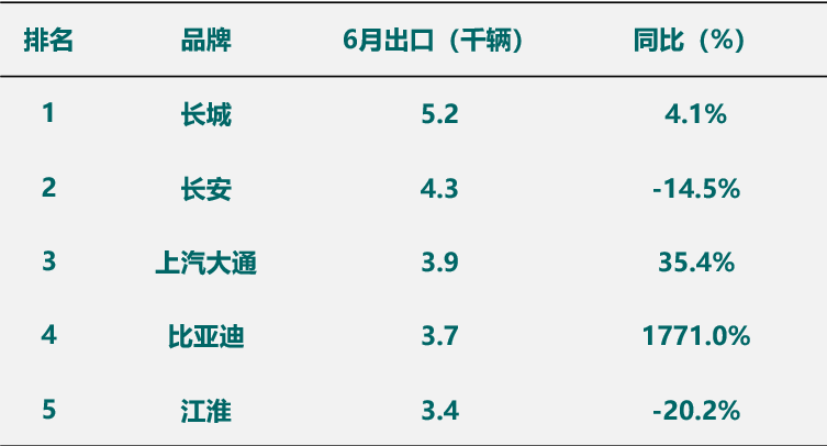 根据中汽协乘联会公开数据,2025年6月皮卡出口2.6万辆,同比增长18.4%。分品牌来看,长城以5200+的出口量稳居第一,得益于其山海炮(含Hi4-T)在澳新市场的出色表现;长安则以4300+的销量跃居第二,其T8 PRO车型以高性价比及可靠的动力性,帮助长安在东南亚、南美等市场实现增长;上汽大通以3900+的销量位列第三,其新能源车型eTeron9,很好的迎合了海外市场电动化的潮流,弥补其国内市场销量的下滑;此外,6月比亚迪新能源皮卡SHARK在南美市场的表现依旧抢眼,助其出口销量排在第四。