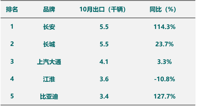 根据中汽协乘联会公开数据,2025年10月皮卡出口2.7万辆,同比上涨28.4%。分品牌来看,长安以5500+的出口量超越长城升至第一,同比大幅增长114.3%;长城紧随其后,出口量同比上升23.7%。上汽大通与江淮分列第三、四位;比亚迪以3400+的出口量首次进入前五,同比涨幅达127.7%。